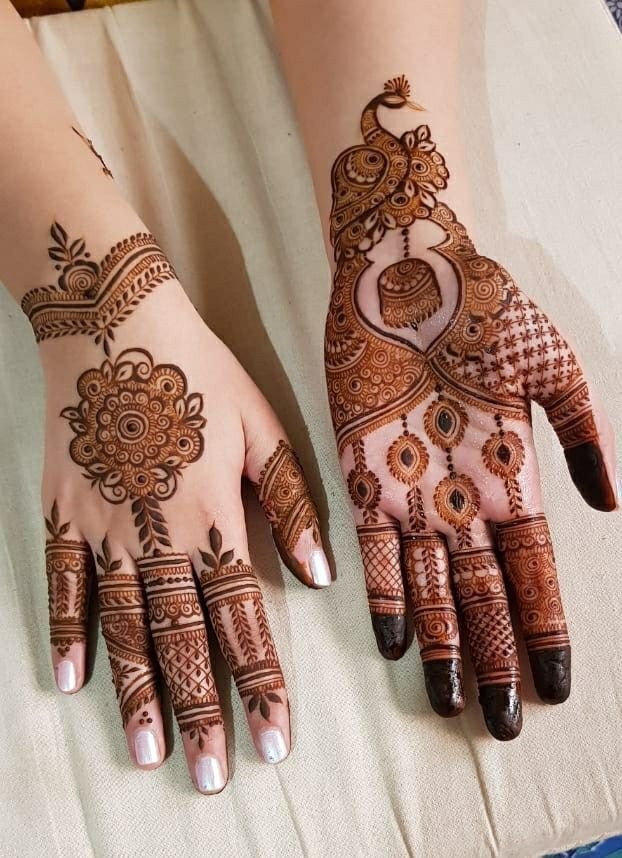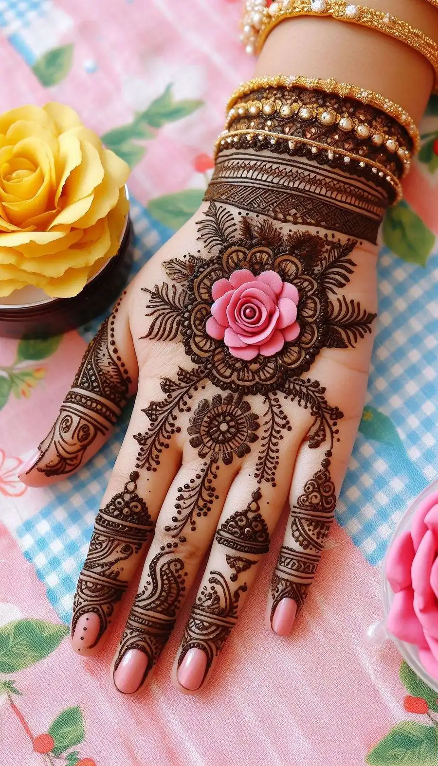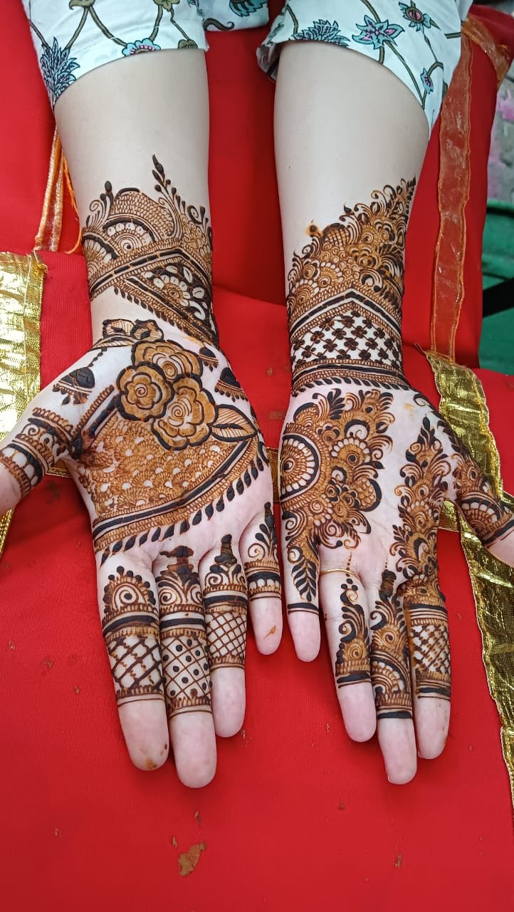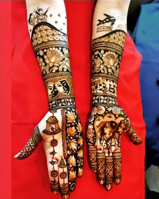 A creative fusion of modern and traditional mehandi art. Ideal for those who want a stylish and unique design.